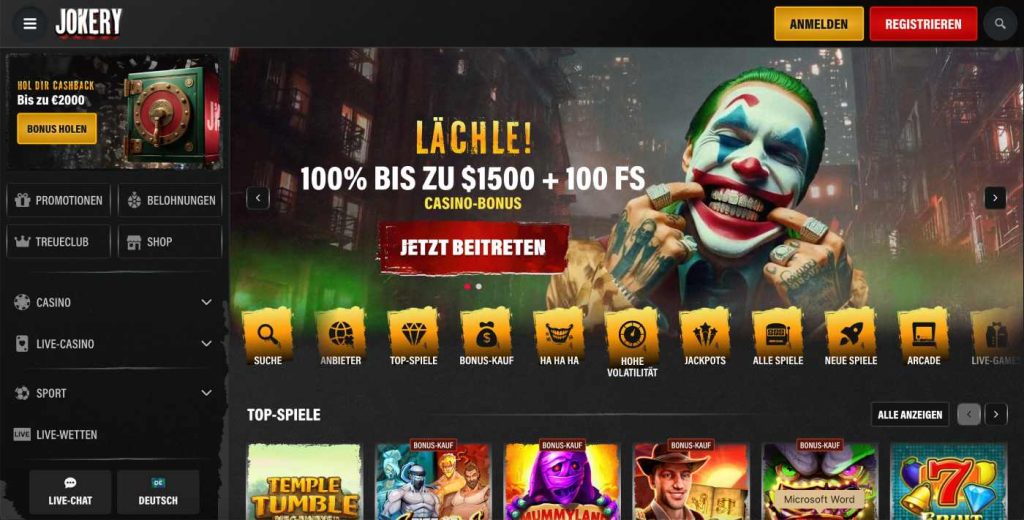 - Jokery − Bestes neues Online Casino 2025 mit 1.500 € Willkommensbonus